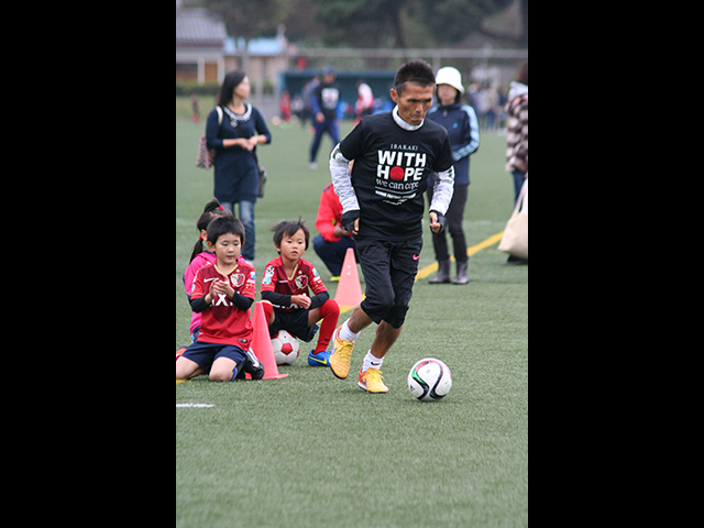 アントラーズのスクールに通っていて、そこでフットボールの案内をもらい参加しました。J・OBのサッカー教室で奈良橋選手にドリブルを教えてもらいました。少し上手になったかなと思います。