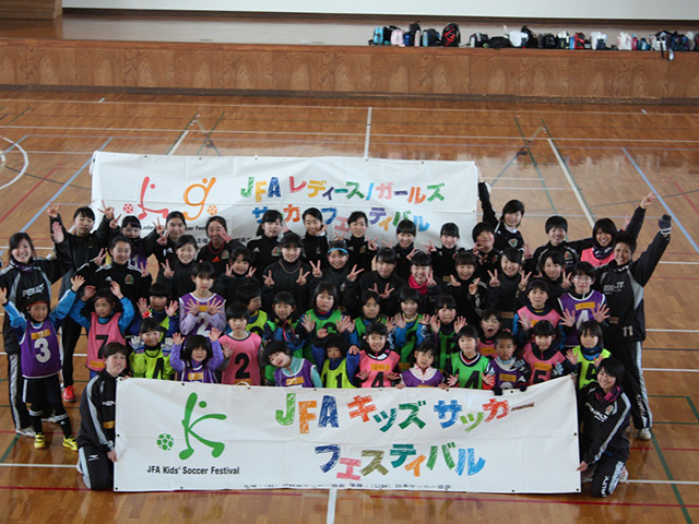 JFAガールズサッカーフェスティバル 長野県松本市の松本市 梓川体育館に、62人が参加!