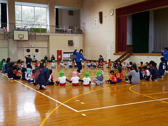 県内の巡回指導園を対象にフェスティバルを企画しました。あいにく小雨が降り続き、急きょ体育館へ変更してレクレーションを行いました。子供達は元気いっぱいに動き回り楽しんでいる姿を見る事ができました。引率者・保護者から楽しかったとの声をたくさん頂きました。スタッフ・指導員・保護者のご協力のおかげで怪我もなく運営ができました。今後も継続してフェスティバルを企画したいと思います。