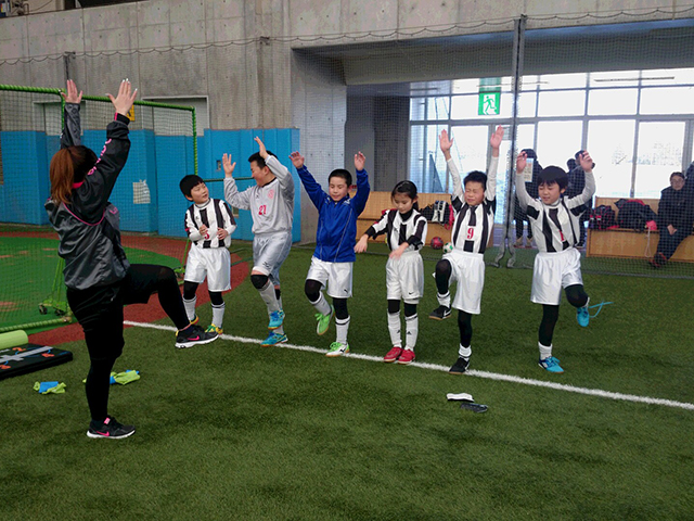 人工芝だから転んでも痛くないから、楽しかったです。ゴールキーパーの時は、いくつもシュートを止めることができたので嬉しかったです。FWの時は、前でかわしてシュートまで打てた。自分よりドリブルが上手い子がいたので、まねしたいです。