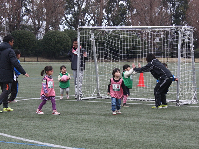 ガールズフェスティバルでの開催でしたが、ガールズの兄弟や保護者の方々も一緒に参加し活動を楽しみました。幼稚園生の弟にアドバイスしている女の子や、お母さんと一緒にボールを追っかける姿にほのぼのとさせられました。新しく出会った仲間の名前を覚え友達になることもでき、人とのつながりが広がるサッカーの素晴らしさを改めて感じました。スタッフも高校生から大学生、主婦とたくさんの方々に協力頂き感謝しています。益々サッカーファミリーが広がっていくことを願っています。
