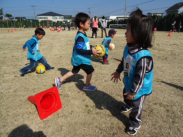 始めは泣いていた子・・、親の手を離さなかった子・・、ドリブルって??えっっ~足で蹴るのヤダよ・・、とそんな子供達も。スタッフや高校生のやさしい導きから最後はみんな「楽しかった~!!」の笑顔で家族のもとへ。子供目線の柔軟なスタッフの対応、良かったと思います。