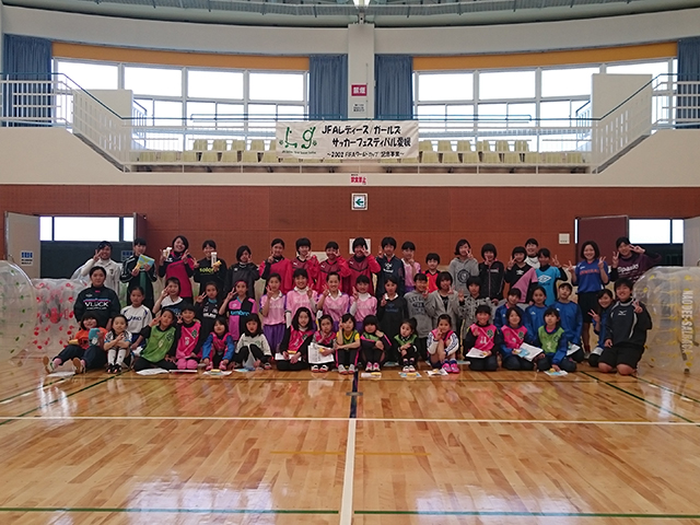 愛媛県の主に中予地区の小学生から高校生を対象に募集しました。募集した地域以外からもチーム総出で来て下さり、楽しんでただきました。このフェスティバルをきっかけに、女の子がサッカーをする機会がこれからも増えていくよう、環境づくりをしたいな、と思いました。