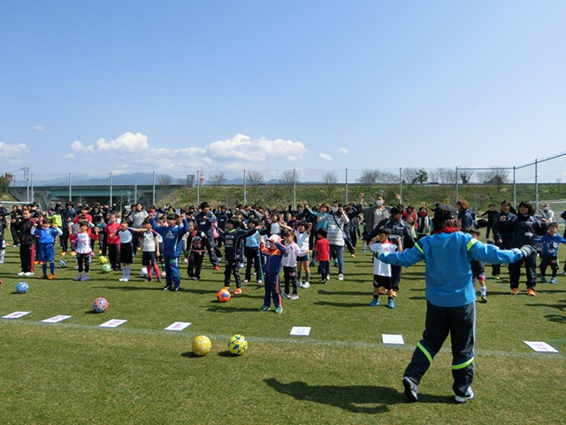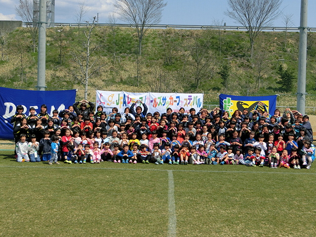 当日は、朝から快晴で天然芝のグランドをたくさんの子どもたちやスタッフで埋め尽くされ、大きな声が響き渡っていました。園児・小学低学年・高学年のグループで活動したため、子どもたち一人一人が積極的にボールに向かう姿となり、たくさんのお友だちもでき会場あちらこちらで笑顔がいっぱいでした。また、保護者の方が積極的にゴールキーパになってくださったり、ゲームにも参加してくださったりするなど参加者全員が楽しめたイベントとなりました。