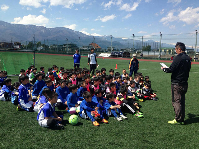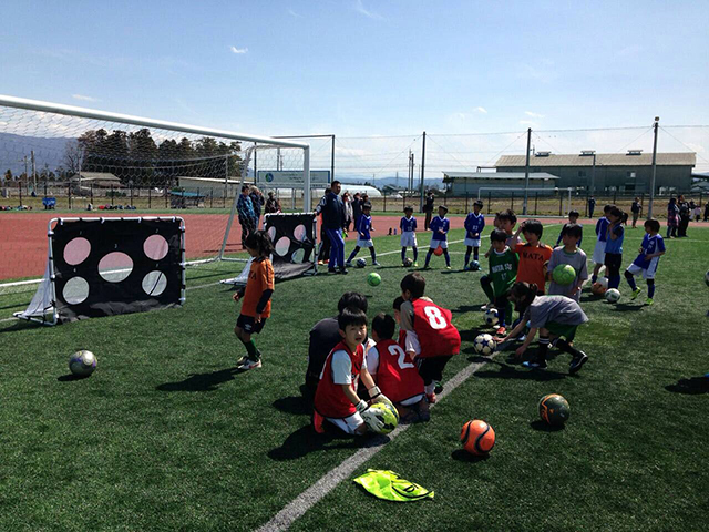松本市の児童を対象に行いました。合同でボールフィーリングを行った後、ゲームを行いました。ゲームの空き時間を利用してキックターゲット等も実施し、当日参加の方も気軽に参加できる雰囲気の中、楽しく行われました。