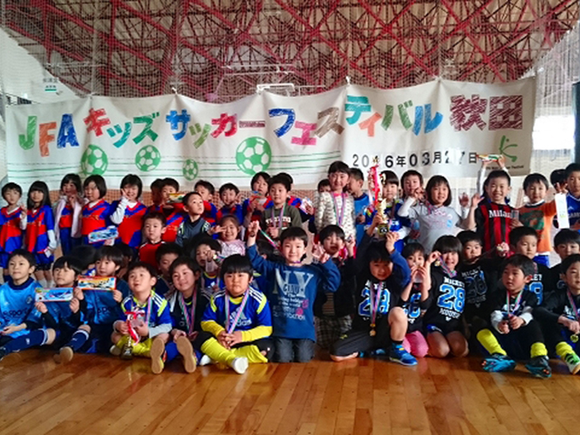 2016年3月27日(日)に秋田県秋田市にある「秋田県立中央公園 アリーナ体育館」にて170名が参加し、JFAキッズ(U-6)サッカーフェスティバルを行いました。