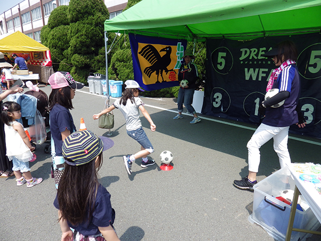 地元大手企業のお祭りに協賛させて頂く形で、JFAフットボールデーを開催させて頂きました。沢山の社員や社員のご家族の方、近隣住民の方等が集まり、多くの出店やアトラクションブースがある中で、WFAのフットボールデーブースは大変な盛況となり、キッズ年代の女の子を中心に、キックターゲットを楽しんで頂き、サッカーの魅力を感じて頂く事が出来ました。
