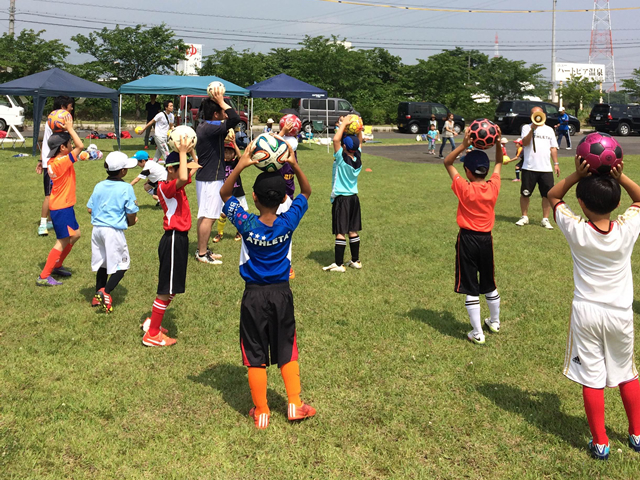 当日は天気もよく、集まった100人を超える子どもたちの元気な挨拶でイベントがスタートしました。ボールを蹴るだけでなく、跳んだり、ボールを投げたり、バランスをとったりといろんな運動をみんなでしました。最後に行った6対6のゲームでは真剣にボールを奪い合う姿や、たくさんのゴールシーンを観ることができました!