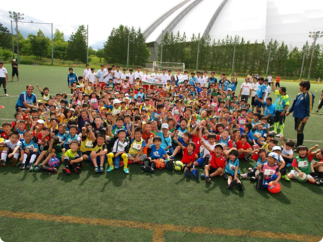 午前中には、未就学児が保護者と親子サッカー教室を行った。ボールを使って、親子で触れ合いながら活動し、最後はサッカーの試合をして楽しそうに活動していた。午後は、小学生が学年に分かれてのクリニックや試合を行い白熱していた。開催にあたって関わってくださった皆様に感謝の気持ちを申し上げます。