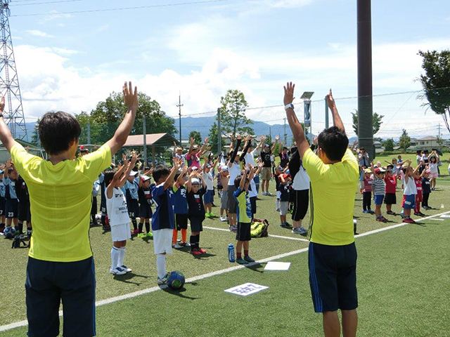 甲府地区の小学校2年生を対象にしたフェスティバルで毎年1回開催しており、既にサッカーを始めている子どももいますが、特に初心者の子どもたちにサッカーを始めるきっかけ作りとしてメニューも親子でふれあう時間を多くとり、もっとサッカーをやりたいと思ってもらえるような楽しいフェスティバルになりました。