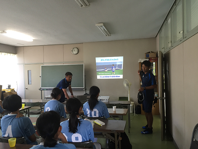 蒲郡フェスティバルではサッカーの試合とキッズリーダー養成講習会に参加しました。キッズ年代の子どもたちにサッカーの楽しさをどのように伝えるのかを、講義と実際の指導の方法を通して学ぶことができました。選手はサッカーの楽しさを実感しながら受講できたようです。高校卒業後、プレーヤーとしてだけでなく、サポーター、指導者、親の立場でサッカーの楽しさを伝えていけることを期待しています。ご指導いただき、ありがとうございました。