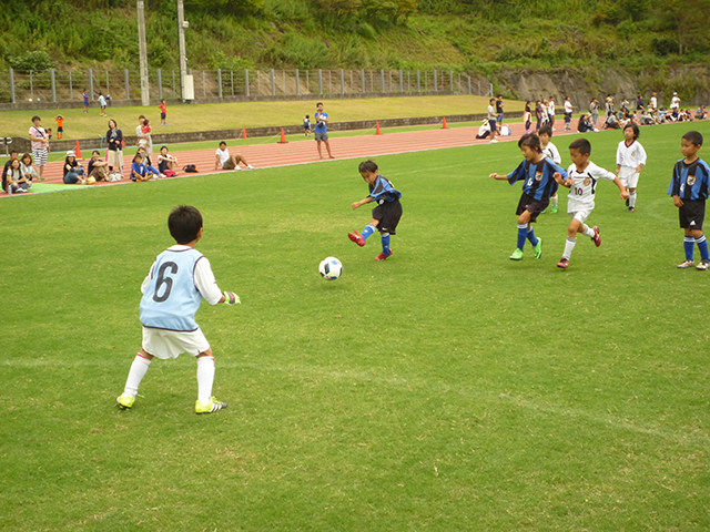 今回のフェスティバルは、U9とU8に分けてゲーム形式で実施した。U9については、経験者が多く、競り合ったりスライディングしたりと迫力あるプレーが多く見られた。U8については、初心者も多かったが、ゴールを決めてヒーローになりたい一心で、一生懸命にボールを追いかけていた。天然芝を使用してのゲームのため、芝生が初めての選手は葉を触ったり寝転んだりして感触を楽しみながらも、ゲームの時は伸び伸びとサッカーをやっていた。また、保護者はもちろんのこと、たくさんの祖父や祖母が応援に訪れ、選手達のプレーに拍手喝采した。