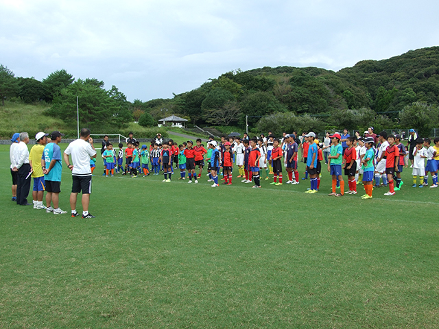 台風の影響もあり、いつ雨が降ってもおかしくない状況の中、今年も朝から晩まで、キッズからシニアまで、芝生の上で一日中ボールを蹴ることができました。キックターゲットコーナーでは、U―12以下の子供たちを対象に、決められた枠にボールが飛んだ子には景品を進呈することで、とても一生懸命蹴っていたようでした。ゲームの合間にしていたのですが、本来のゲームよりも夢中になっている子供たちもいて、とてもよかったと思います。中学生以上については、今年はカテゴリー別に行わず、あらゆるカテゴリーが混ざった状態でチーム編成を行い、ミニゲーム形式で行ってみましたが、これが参加者には評判がよく、とてもフレンドリーなフェスティバルとなりました。