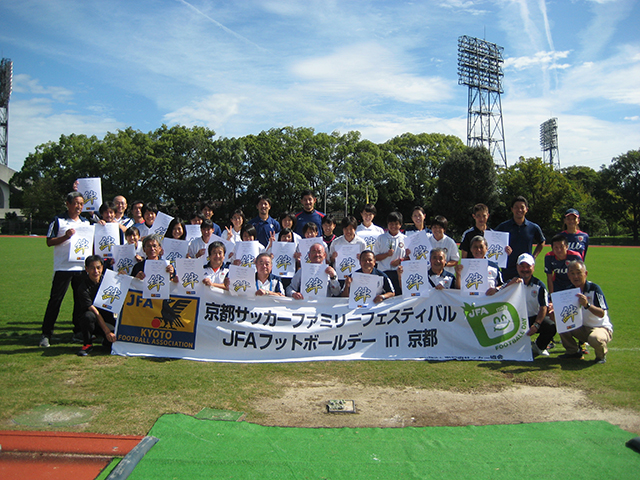 | 概要 | "JFAフットボールデーに習い、京都府ではサッカーをみんなで「する、見る、支える、語る」日として「サッカーファミリーの日」を制定します。キッズから4種、3種、2種、1種、女子、フットサル等多くのサッカーファミリーが集い、サッカーをできる喜びに感謝をあらわす日として、また、サッカーに親しみ楽しんでもらえる日として、人と人との絆を深め、サッカー・スポーツの振興・発展を目的としてイベントを実施します。" |