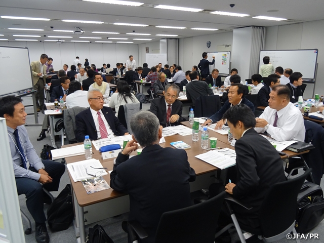 ミーティングでは、前回のディスカッションの振り返りや日本障がい者サッカー連盟(JIFF)の紹介などJFAからの情報を伝えるパートと、都道府県サッカー協会からの事例紹介のパートのあと、地域ごとにグループディスカッションを行いました。出席者からは、JFAやJIFFからもっと具体的な方針を示してほしいといった意見や、Jクラブとの連携を積極的に図っていきたいといった声があがりました。