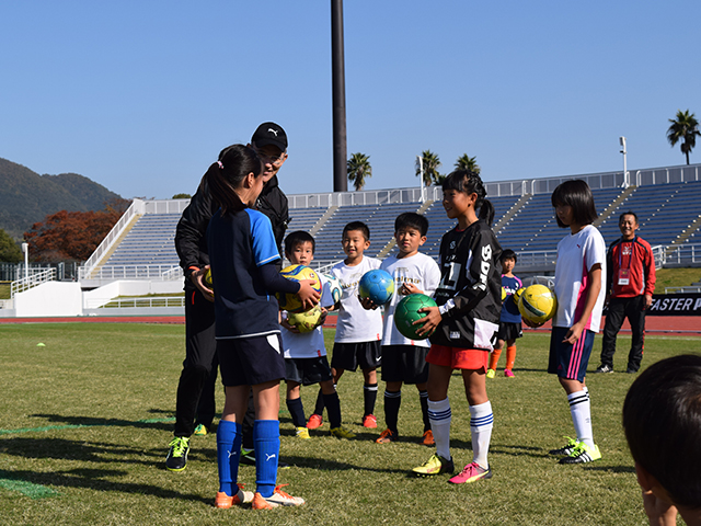 今回は講師に元サッカー選手の宮澤ミシェル氏を招き子供達にサッカー(≒フットサル)の楽しさや面白さをトークと触れ合いの中で感じて頂く事が出来ました。思わぬ講師からの指導やアドバイスに子供達も真剣な眼差しで聞き入っていました。また保護者の方々もその子供たちの姿に感動されたようで初めてみる子供たちの姿もあったと好評でした。イベント後に子供たちの代表が高校サッカー選手権和歌山大会決勝戦のフラッグベアラーとエスコートキッズを務める等サッカーファミリーを意識することが出来た良いイベントとなりました。