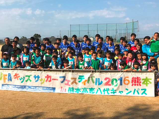 2016年11月13日(日)に熊本県八代市にある「熊本高等専門学校八代キャンパス」にて107名が参加し、JFAキッズ(U-6/8/10)サッカーフェスティバルを行いました。