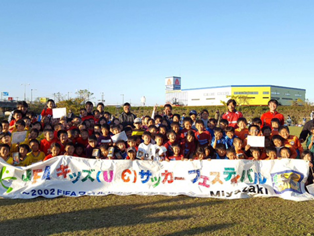 2016年12月11日(日)に宮崎県都城市にある「沖水川市民緑地公園」にて490名が参加し、JFAキッズ(U-6/8/10)サッカーフェスティバルを行いました。