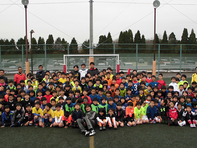 今回は、未経験者の参加が35名と昨年度より15名の増加があった。全参加数が162名(女の子33名)と女の子が増加したことは成果があった。未経験者に対しては、フェスティバル形式でゲームを中心に実施した。保護者もピッチそばで見学してもらい、子ども達の姿を身近に感じていただいたことは本当に良かったと思う。子ども達のはちけるような笑顔が観られたことは本当に良かった。また、経験者については、安永氏・棟久氏の実技を交えた指導に子ども達は真剣に取り組んでくれた。ドリブル・パス・シュートと時間の経過とともに子ども達の笑顔がピッチ一杯に広がっていく。とても、有意義な一日になった。
