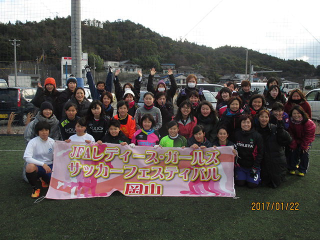 2017年1月22日(日)に岡山県玉野市にある「宇野港フットサルコート」にて108名が参加し、JFAレディース/ガールズサッカーフェスティバルを行いました。