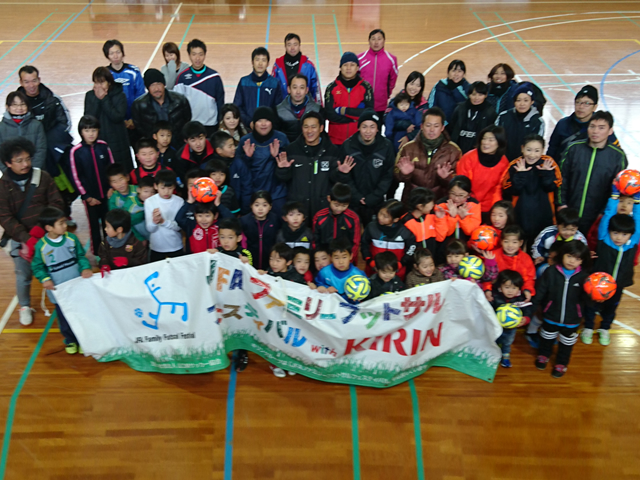 当日は今年一番の寒気の中、フェスティバルに参加していただき熱戦を繰り広げてくれました。日ごろ運動されていないお母さんたちが笑顔で子供たちと一緒にボールを蹴ったり追いかけたりゴールを決めては家族とハイタッチをする姿がとても印象的でした。これからも家族でスポーツをする喜びを、多くの人に伝えていければと思います。