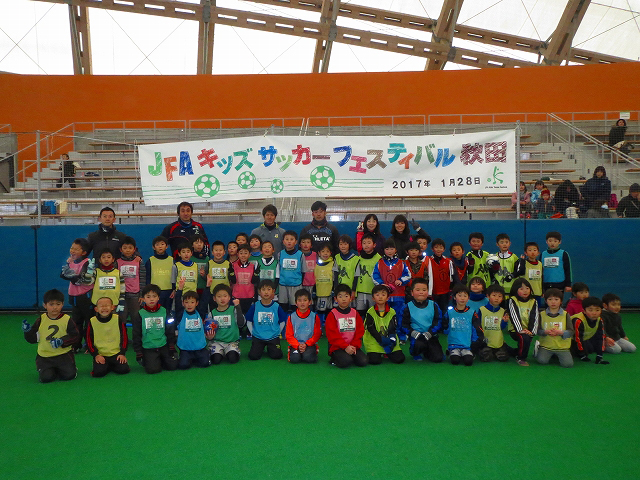 2017年1月28日(土)に秋田県大館市にある「大館樹海ドーム」にて111名が参加し、JFAキッズ(U-6/8)サッカーフェスティバルを行いました。