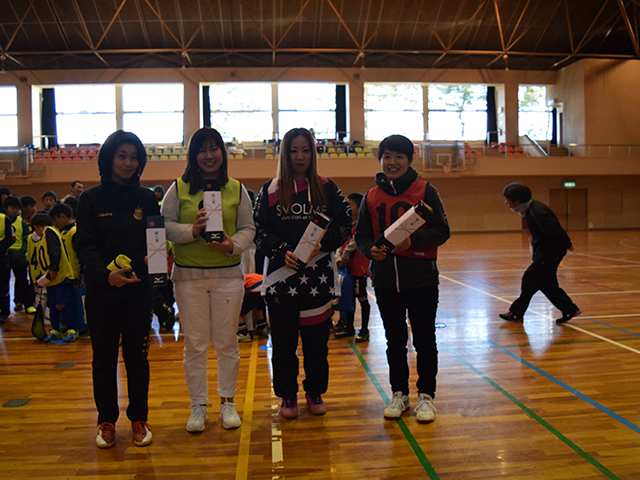 2月初旬の体育館とはいえまだまだ寒い気候の中、普段サッカーをしている小学生やキッズ年代の女の子、運動不足のお父さん、サッカー未経験のお母さんが参加して行われました。午前はシュート・キック・ドリブルなどのトレーニングワークショップを中心にミニゲームなど5つのワークショップを交互に体験。午後は2コートで8チームの対抗戦ゲームを行いました。ゲームを重ねるたび熱気に包まれ歓声の中で今回のフェスティバルを締めくくることが出来ました。