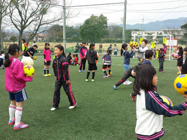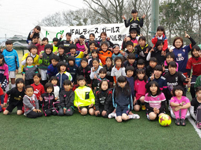 愛媛県東温市でレディース・ガールズサッカーフェスティバルを開催した。1部は一般やお母さん世代を対象、2部は園児から高校生までの学生を対象とした。1部は過去全国大会にも出場経験のあるお母さんや、サッカーをすることが初めての一般の方やお母さんが集まった。小さい子共連れで参加していたお母さんは運営の補助をしてくれている学生の女の子達に子供を預け、サッカーを楽しめる環境が整った。また、サッカーを初めてやってみた一般の方やお母さんは、「楽しかったです。またやりたいです。」「子供の気持ちがわかりました。」など笑顔で話されていた。2部は学生対象で実施した。初めてボールに触れる小さい子やサッカー経験のある女の子が約50名集まった。上の学年の子が下の学年の子をサポートし盛り上げたり、下の学年の子ども達が果敢に上の学年にチャレンジしていく様子も見られ、女子サッカーならでわの楽しい空気感が終始流れていた。