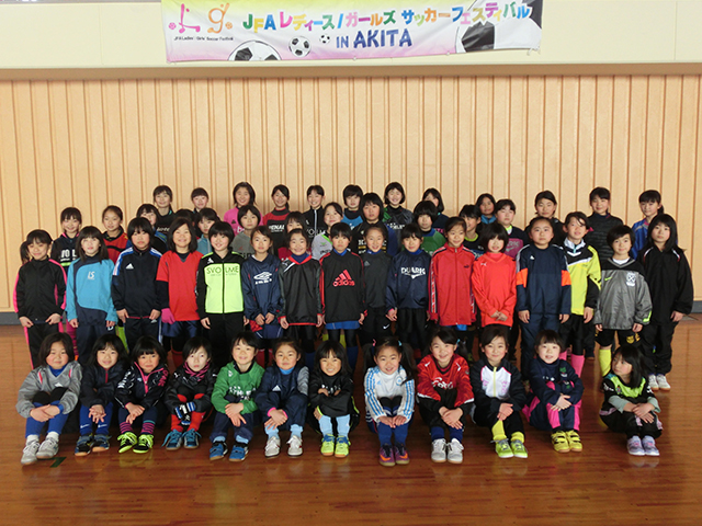 2017年3月18日(土)に秋田県秋田市にある「秋田市河辺体育館」にて112名が参加し、JFAガールズサッカーフェスティバルを行いました。