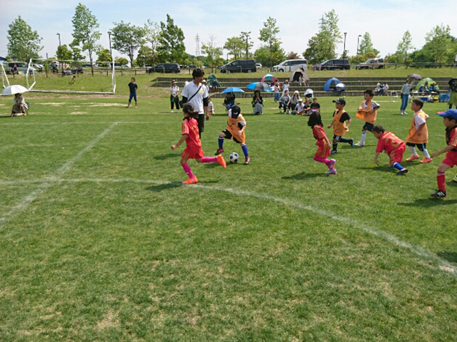 5月とは思えないほど暑い中だったが子ども達は、緑の芝生の上で楽しそうにプレーしていた。保護者の方も熱心に応援していて、大変盛り上がった。