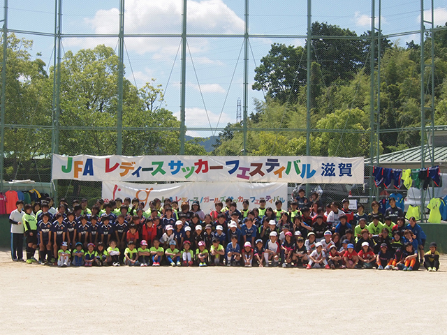 2017年6月4日(日)に滋賀県栗東市にある「JRA栗東トレーニングセンター総合グラウンド」にて182名が参加し、JFAレディース/ガールズサッカーフェスティバルを行いました。