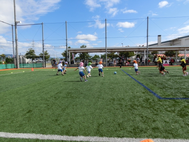 | 開催のねらい | 6歳以下の幼保園チーム対象としたゲーム、アトラクションでサッカーを楽しんで貰うフェスティバルです。 サッカーを通じて仲間たちと身体を動かし嬉しさ,くやしさを共有しサッカーの楽しさを感じて貰います。 |
