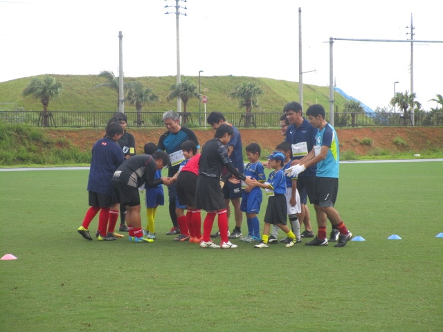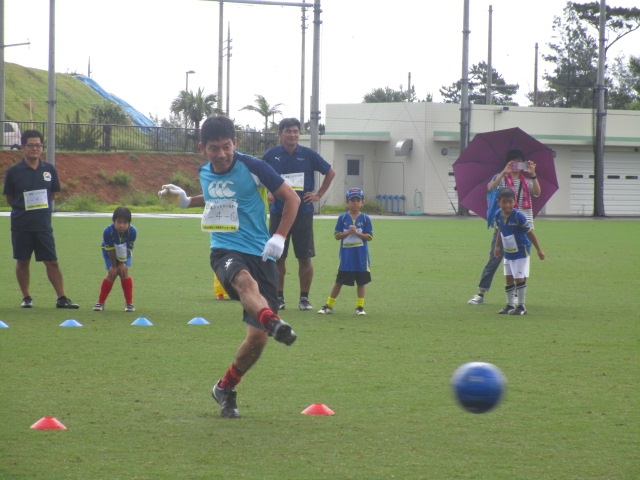 | 担当者のコメント | 今回のフットボールデーでは、「誰でも参加できるPK大会」を開催し、子どもから大人まで約80名の参加者及び観戦者、運営を含め、300名近くのサッカーファミリーが金武町フットボールセンターに集まりました。初心者も経験者も、男性も女性も、大人も子どもも一緒になってPK大会を楽しみ、大変有意義な時間を過ごすことができました。 |