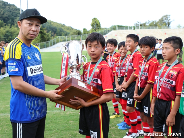 閉会式では、ラモス瑠偉さんが「努力は絶対に裏切らない。皆さんも夢に向かってこれからも努力し続けてください」と未来のサッカー選手たちにエールを送りました。優勝したディアブロッサ高田FCには、優勝トロフィーのほか、大会アンバサダーの香川真司選手に会いに行く『ヨーロッパサッカー夢者修行』の目録などが贈られました。