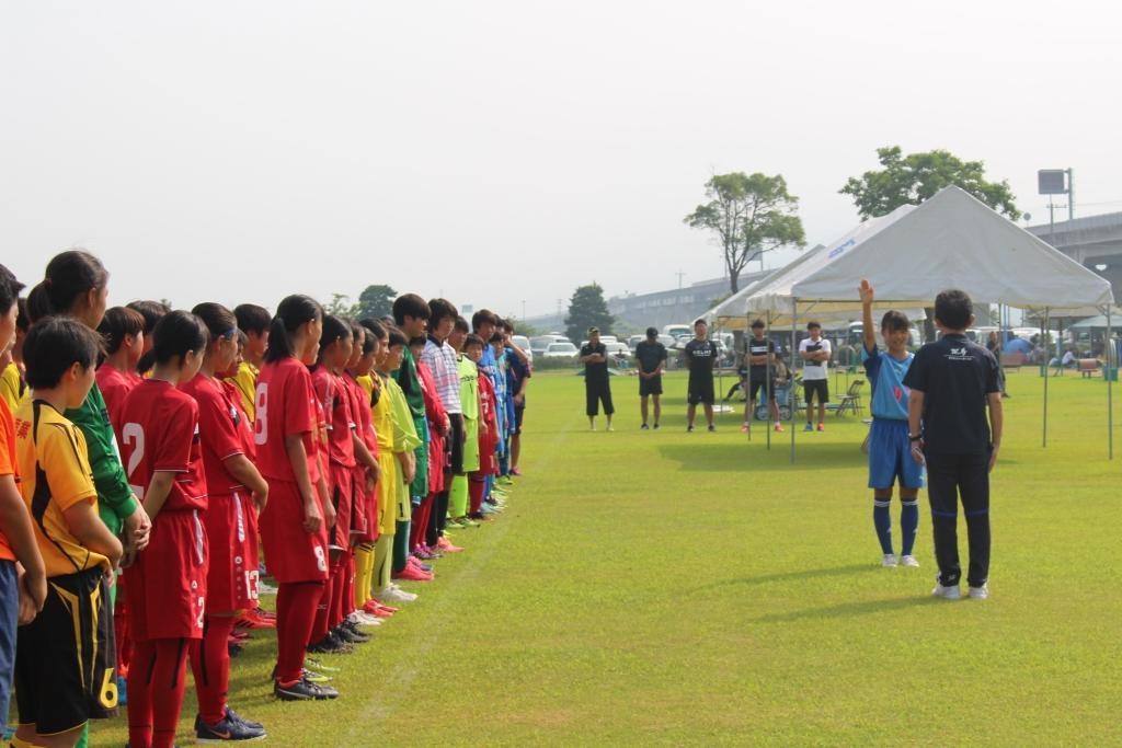 2日間ともに炎天下での大会となった「第24回女子(U-15)サッカーINくまもと」において、昨年に続いて優勝することができました。今年のメンバーは、昨年優勝を経験した選手に新入部員を加え、本大会や九州U-15選手権大会で良い成績を出すことを目標に、強化を図ってきました。先の九州U-15選手権大会では準優勝、本大会で優勝と、選手の努力と工夫で目標は達成できたかなと思います。この大会の企画、運営に携わった多くの人たちに感謝し、この大会がさらに発展し、この年代の選手、チームの目標であり続けてくれるよう願うものです。