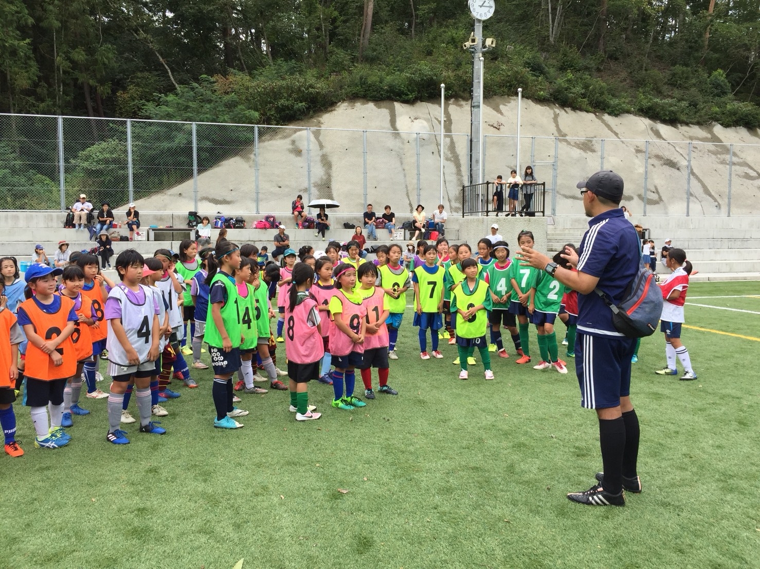 | 担当者のコメント | ピッチ全体を細かくコート分けして、U-7(1年生)からU-10(4年生)まで世代間の差が生じないようなゲーム環境を確保しました。所属チームに関係なく、違ったチームとの仲間づくり、自己紹介をして呼んで欲しいニックネームの共有なども出来ました。結果や勝ち負けのつかないゲームでしたので、選手もたくさんチャレンジし、サポートするスタッフの方々も良いプレーを見つけて積極的にコーチングして下さいました。また、チーム分けの中で偶然力量差が発生した場合は、スタッフが少しずつ「助っ人」協力することもあって、選手とスタッフとの距離感も縮まりながら楽しくゲームが出来ました。 また、この世代の女子選手はボールを怖がりどうしてもキーバーをやりたがらない、経験をしたがらないことがあります。ですので、休憩時間を活用して、基本的なキーパートレーニングも選手全員で経験しました。人工芝グラウンドならではの倒れても擦りむかない、怪我しにくい環境でしたので、ローリングダウンの経験も出来ました。 最後は参加賞まで3段階ジャンケン競争(選手→コーチA、B→コーチC→参加賞)。みんなで全力ジャンケンでした!! |