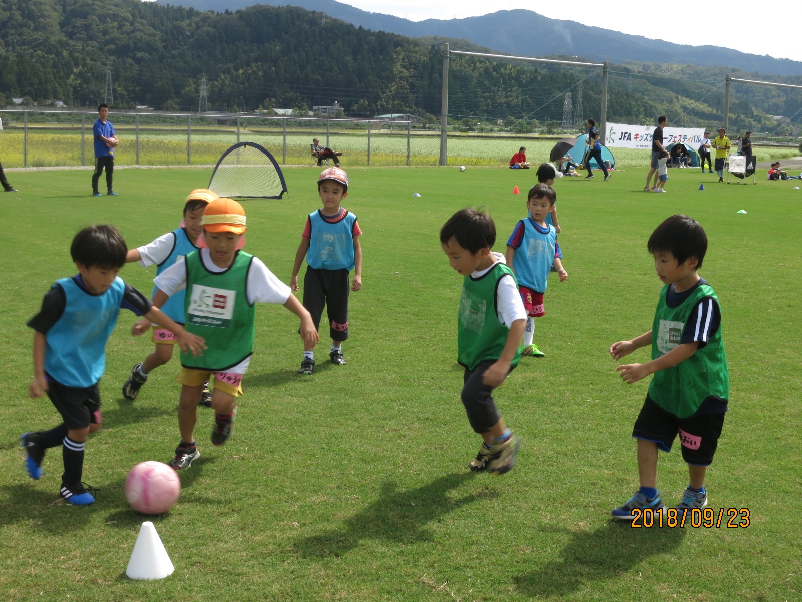 JFAキッズ(U-8)サッカーフェスティバルは、サッカーが好きな8歳以下の子どもであれば、だれでも参加できる楽しいフェスティバルです。2018年09月23日(日)に福井県福井市にある「藤岡サッカー場」にて70人が参加しました。