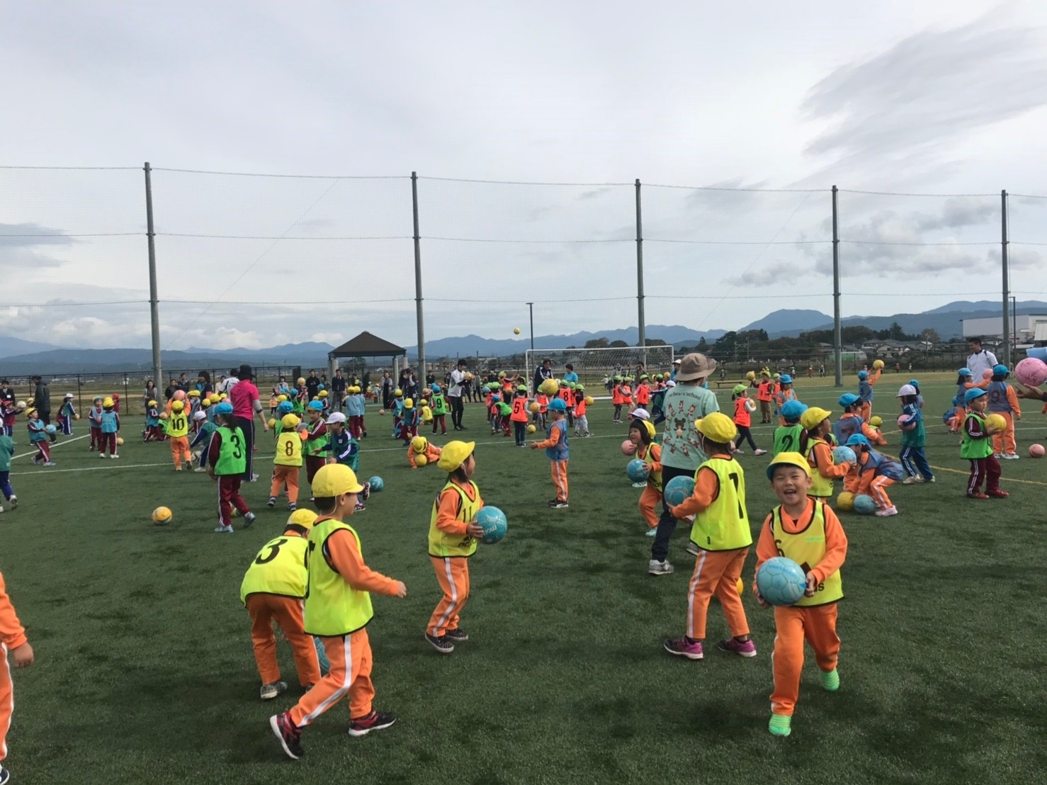 | 開催のねらい | U-6の子供たちを対象に、ボール遊びやサッカーを通してグループで遊ぶ楽しさと他の園の子供たちと交流を深めてもらう。 |