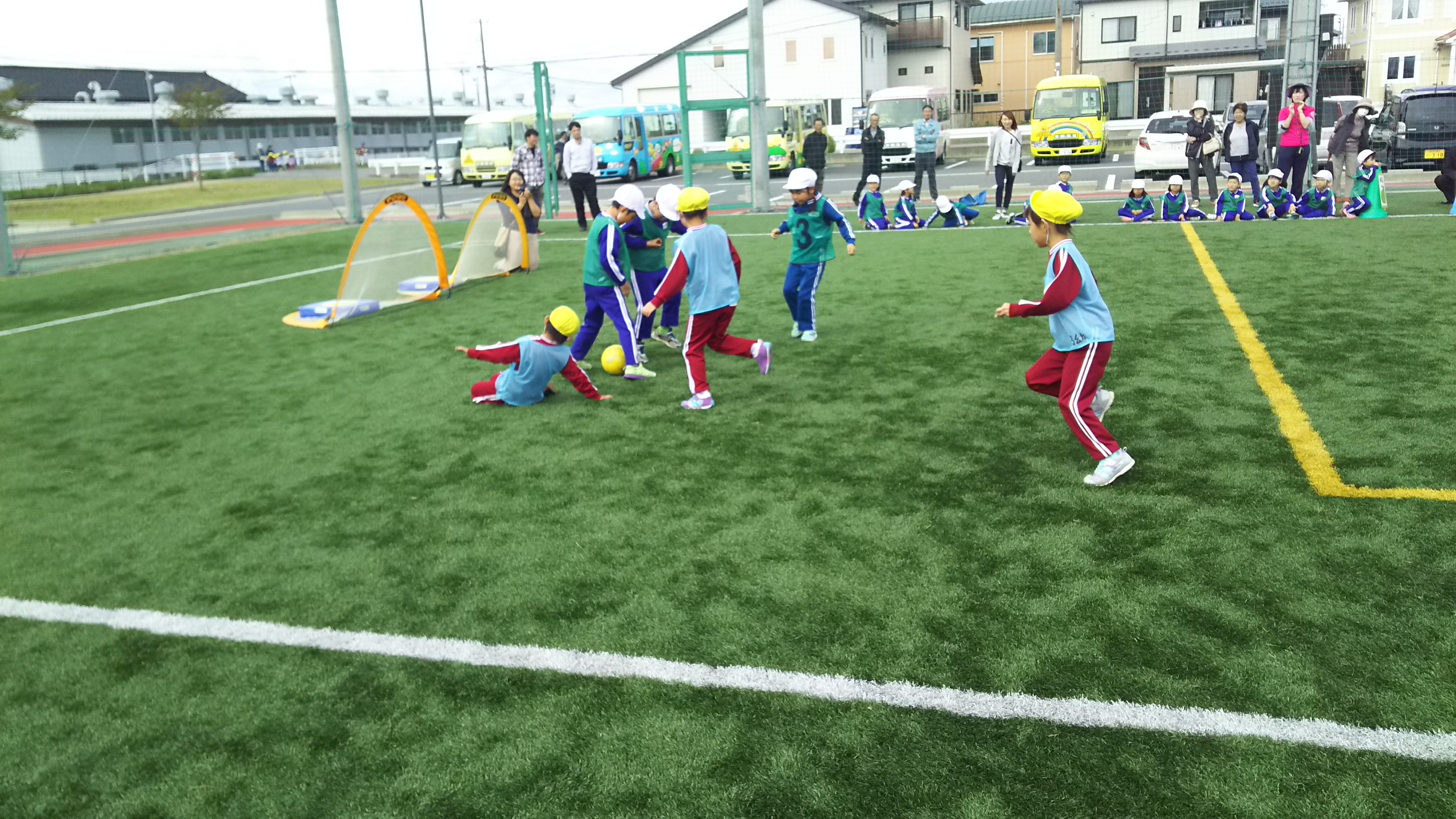 天候に恵まれ、人工芝のグランドを存分に使い思い切り楽しむことが出来た。コーチの言葉がけが良くて、子供たちが楽しそうにボールを追いかける姿が印象的でした。