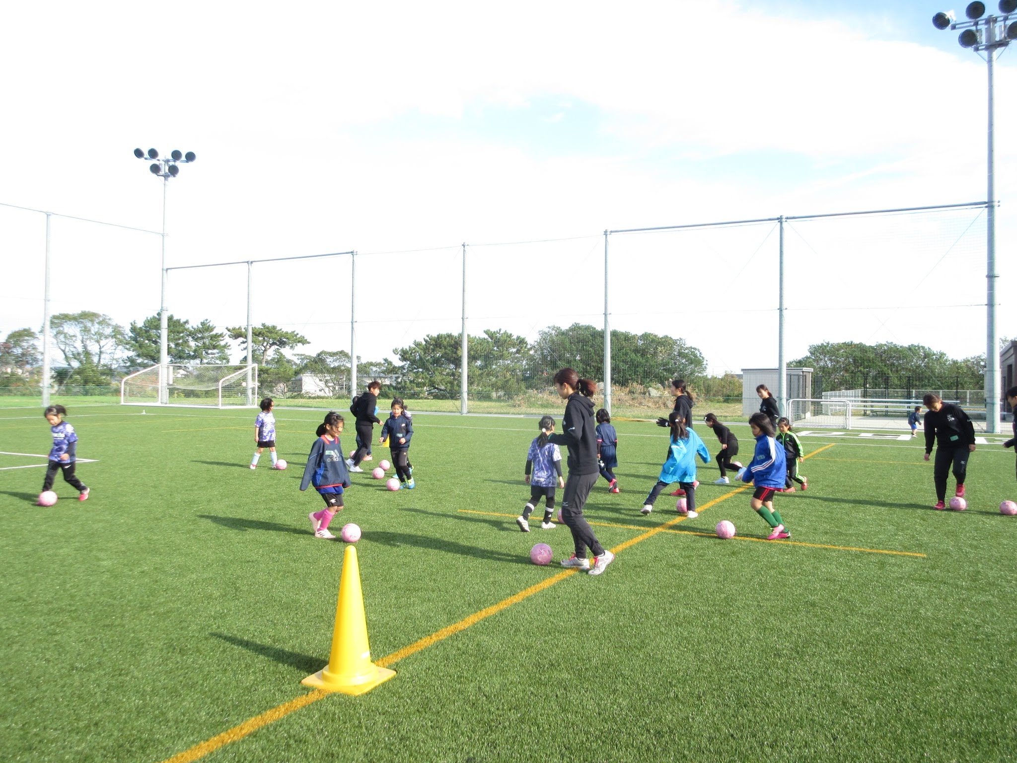JFAガールズサッカーフェスティバルは、サッカーが好きな女性であれば、だれでも参加できる楽しいフェスティバルです。2018年11月23日(金)に徳島県徳島市にある「四国大学しらさぎ球技場」にて40人が参加しました。
