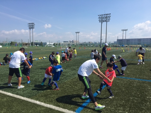 | 担当者のコメント | 先の台風の影響により、開催予定会場であった屋根付きフットサルコートが使用できず、通常ピッチでの開催へと募集案内を変更しました。予定より参加数が減少しての開催となりましたが、夏の暑い中の活動にも関わらず、個々への質の高い関わりはしっかりできていたと思います。 |