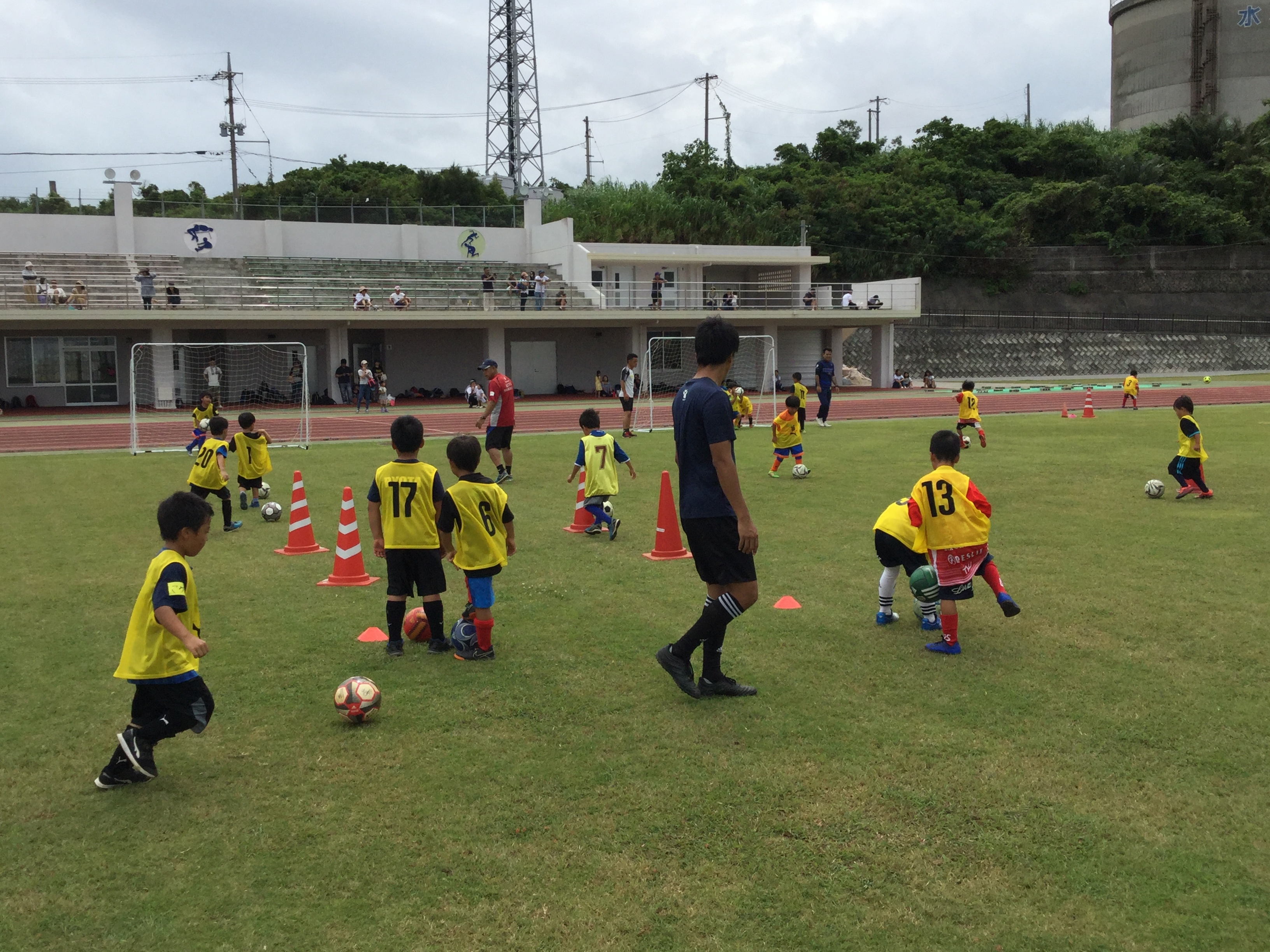 | 担当者のコメント | 昨年の石垣市での開催に引き続き、今年度は宮古島市での開催となりました。天気の心配をよそに、150名を超える子どもたちに参加していただきました。フェスティバル前半は何種目かのアトラクションにチャレンジしていただき、後半はゲーム形式で楽しい時間を過ごしました。普段は違うチームで活動している子どもたちが交流を図る場面も見られましたし、はじめてサッカーに触れる子どもたちにも楽しい時間を過ごせたのではないかと思います。宮古島の子どもたち、スタッフの皆さん、父兄の皆さんのパワーに後押しされ、大盛況でフェスティバル終了となりました。今後も離島での継続的なフェスティバル開催を検討してい行きたいです。 |