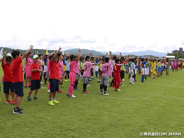 開会式にはE-girlsの須田アンナさん、武部柚那さん、FANTASICSの堀夏喜さん、八木勇征さん、中島颯太さんが駆け付け、高校生までサッカーやフットサルをプレーしていた中島颯太さんは「芝生の上でプレーするのはテンションが上がると思うけれど、だからこそフェアプレー精神を忘れずに相手をリスペクトして、楽しい一日にしましょう」とエールを送りました。
