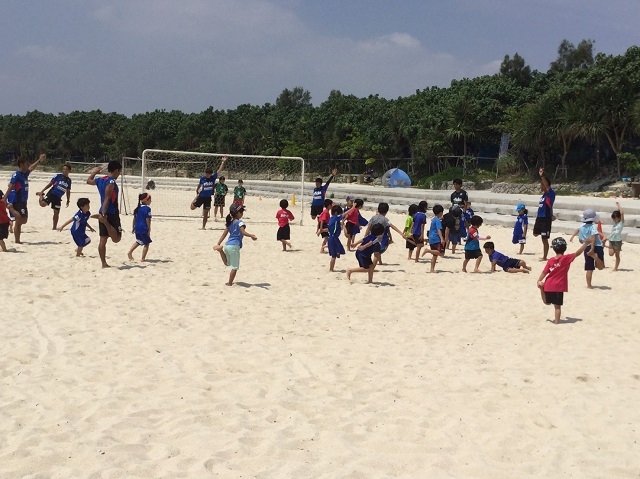 | 担当者のコメント | 2018年度最初のフェスティバルはビーチサッカーのキッズフェスティバルを行いました。ビーチサッカーフェスティバル開催の前に、子どもたち、スタッフ、父兄の皆様と一緒にビーチクリーン活動を行いました。ビーチスポーツの一環としてビーチクリーン活動がありますが、この活動を多くの方に認知していただけてのではないかと実感しました。 フェスティバルでは、普段の『サッカー』とはまた一味違った『ビーチサッカー』を体感していただきました。沖縄県で活動するプロビーチサッカーチーム『ソーマプライア沖縄』の選手をコーチとして招聘し、サッカークリニックを開催しました。ビーチサッカー独特のボール扱い、ビーチサッカーの魅力を子どもたちに楽しく伝えることができました。 今後サッカーだけではなく、ビーチサッカーへの関心も高まっていくのではないかと思いました。 |