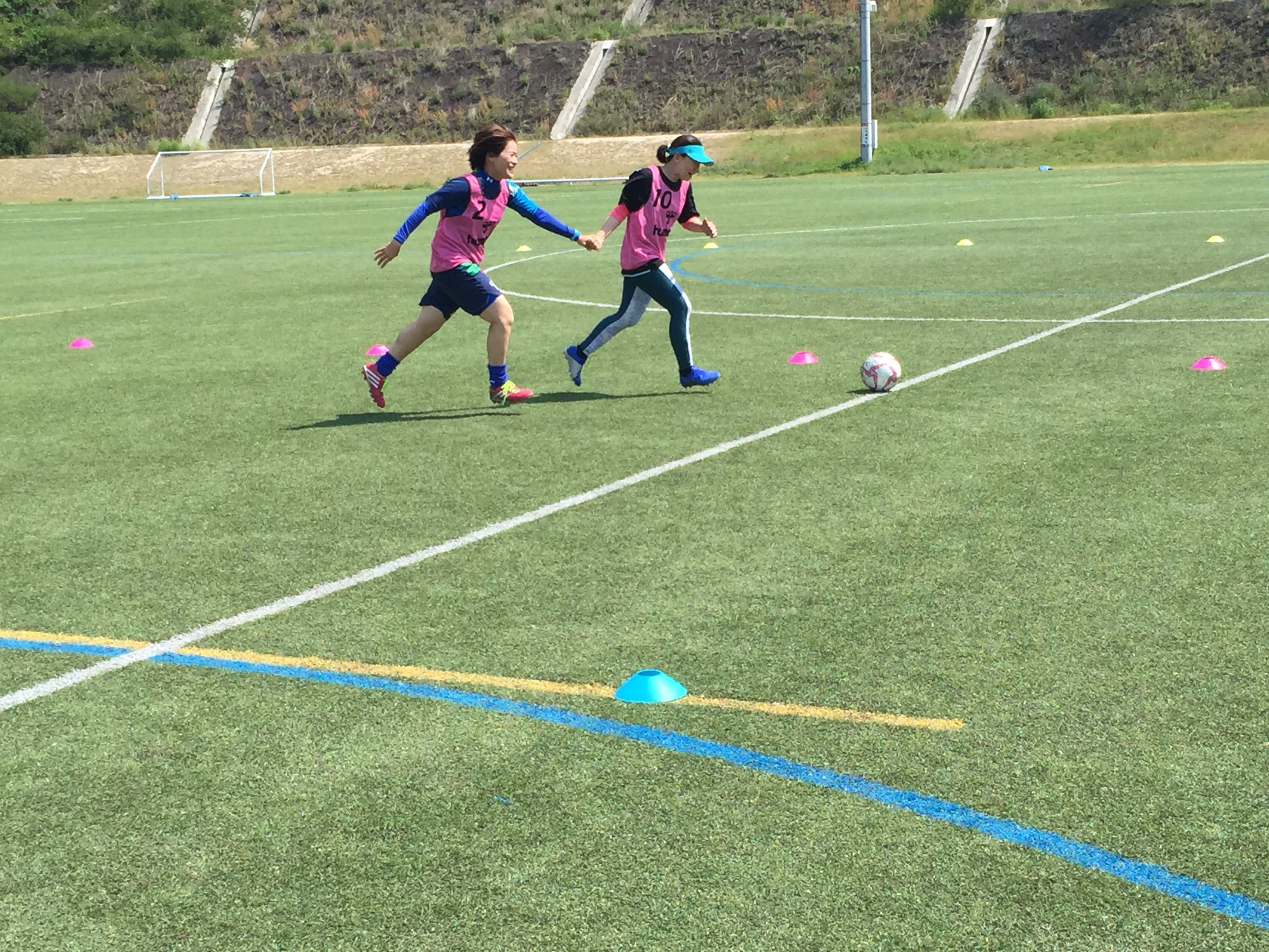 参加者が少ない中で、ウォーキングサッカーをしたり、手をつないでドリブルしたり、キックターゲットをしたりと楽しみながら行えたと思います。ウォーキングサッカーではサッカー経験者も苦戦していました。いい経験ができたと思います。
