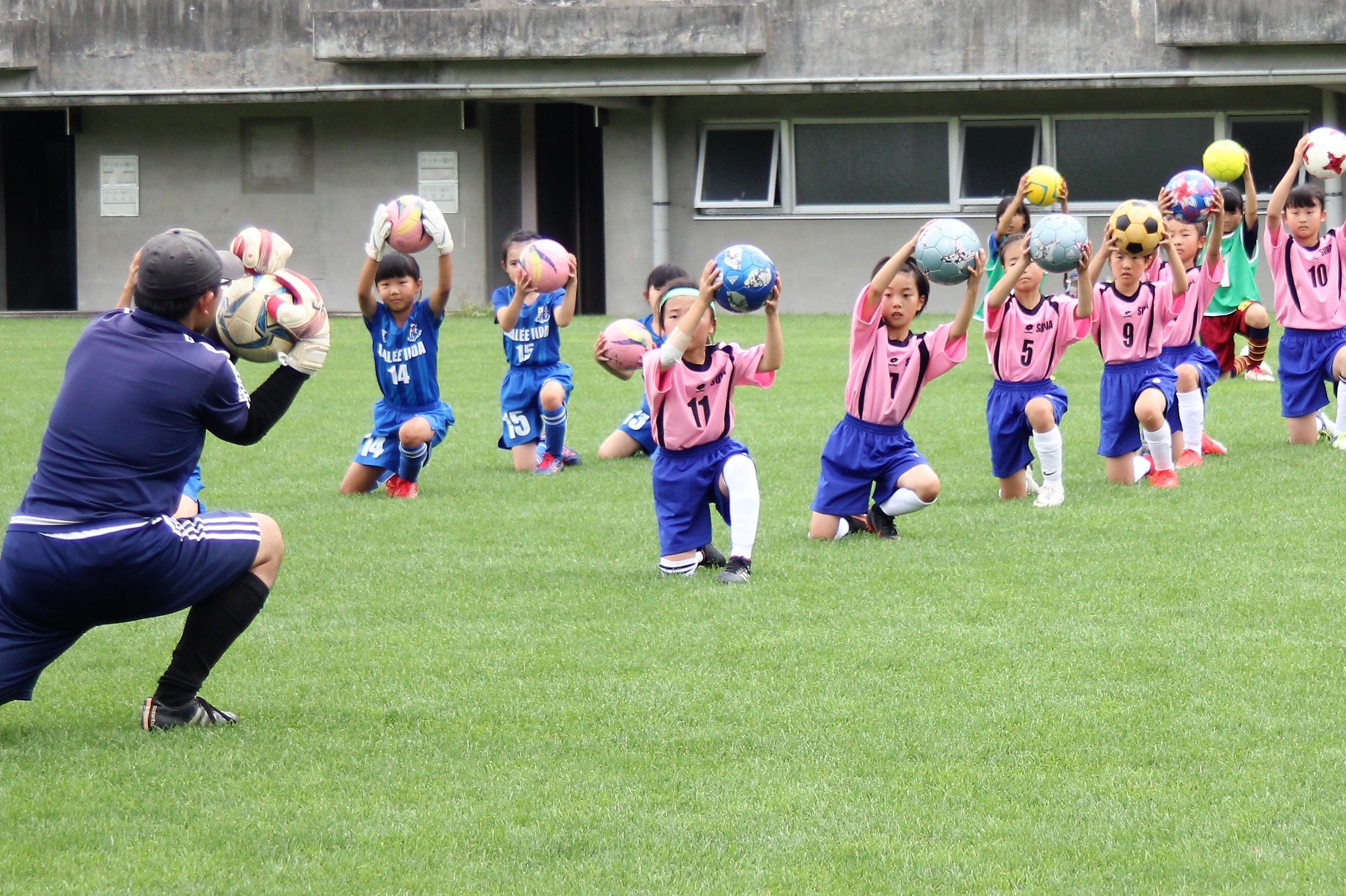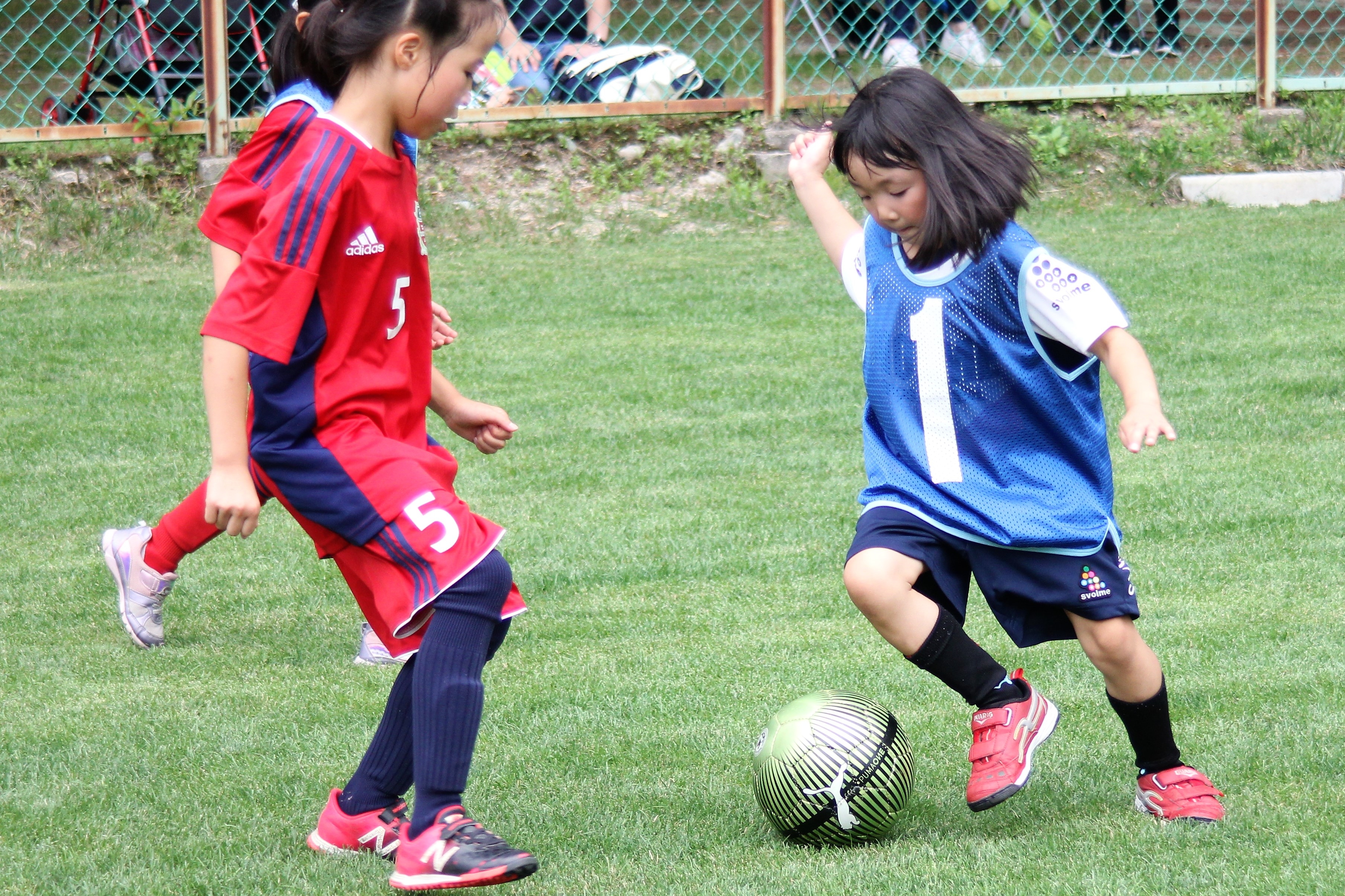 | 開催のねらい | 今後、練習を重ね、サッカー経験を積んでたくましく育っていってもらいたい4年生の少女たちに、チームの壁を越えて仲良くなってもらい、サッカーに取り組んでいく勇気と自信をつかんでもらいたい。少女選手たちがはじめて会った仲間の名前を5人以上おぼえることができる。 長野県内のU-10、4年生以下のサッカー少女たちの交流会です。1年生から4年生まで、各地の少年団や小学生サッカーチームで活動している女の子たちに集まってもらい、5~6人制のミニゲームを楽しみながら交流を深めます。初心者も参加歓迎です。 |