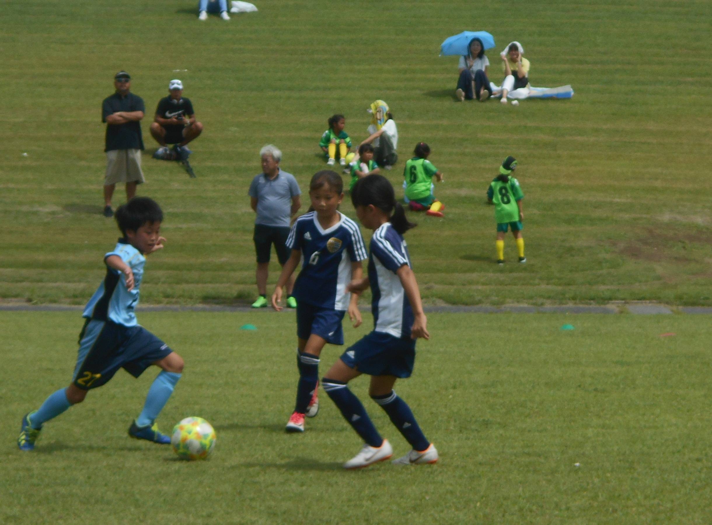 | 担当者のコメント | 11人制のサッカーが出来ないチームの為に広く門戸を開き、小さなコートを使用してサッカーのおもしろさを体で体験してもらう為、また、将来の少女のサッカー活動を促す為、とし開催しました。芝生の管理も良く環境は大変良好でした。ミニサッカーコートを8面敷設し、全76試合を行いました。コート敷設には、ミニゴールポストの組立て等も参加のコーチ及び子供達の御協力をいただきスムーズに完成しました。試合は事故も無く予定通り順調に完了しました。参加者は、少女U-12の普段から活動している少女サッカーチームを中心としていますが、個人参加であれば 参加者でチーム編成し参加してもらいました。6年生以下、5年生以下チーム、及び3年生以下の3つのカテゴリーに分け、4~5チームのリーグ戦として、各チーム3~4試合出来る様組み合わせました。3年生以下の参加者は個人参加を含めその場でチーム編成しリーグ戦を行いました。子供達も、「いろいろな知らないチームと試合して楽しかった」「楽しかった。次は試合に勝ちたい。」「4試合やって3回勝てたので楽しかった」等々かなり満足の声も聞かれ、当初目標の「サッカーの面白さをより感じる事ができ、レベルに応じたゲーム環境」を提供出来たものと思い次回の準備にとりかかります。 |