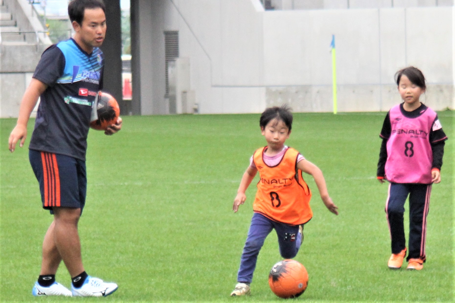 | 担当者のコメント | 台風接近のため心配された天候も大きく崩れることなく、保護者同伴の幼い子どもたちが多数参加してくれました。よく整備された長野Uスタジアム天然芝ピッチのうえで、子どもたちはいきいきと走り、ボールを追い、ゴールを楽しんでいました。AC長野パスセイロレディース3名の選手たちと、女子選手を指導しているコーチたちが、明るく元気な声がけで子どもたちを励まし、がんばる姿をほめ、ゴールを一緒になって喜び、参加者に笑顔がたくさん見られました。治療を要するケガはなく、熱中症の心配もありませんでした。サッカーの楽しさ、みんなで取り組むスポーツの良さを十二分に伝えられたフェスティバルだったと思います。 |