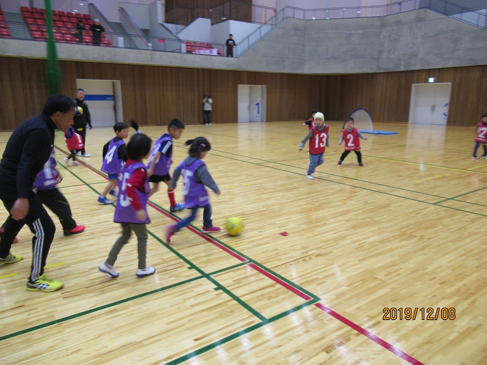 JFAキッズ(U-8)サッカーフェスティバルは、サッカーが好きな8歳以下の子どもであれば、だれでも参加できる楽しいフェスティバルです。2019年12月08日(日)に福井県勝山市にある「勝山市体育館ジオアリーナ」にて40人が参加しました。