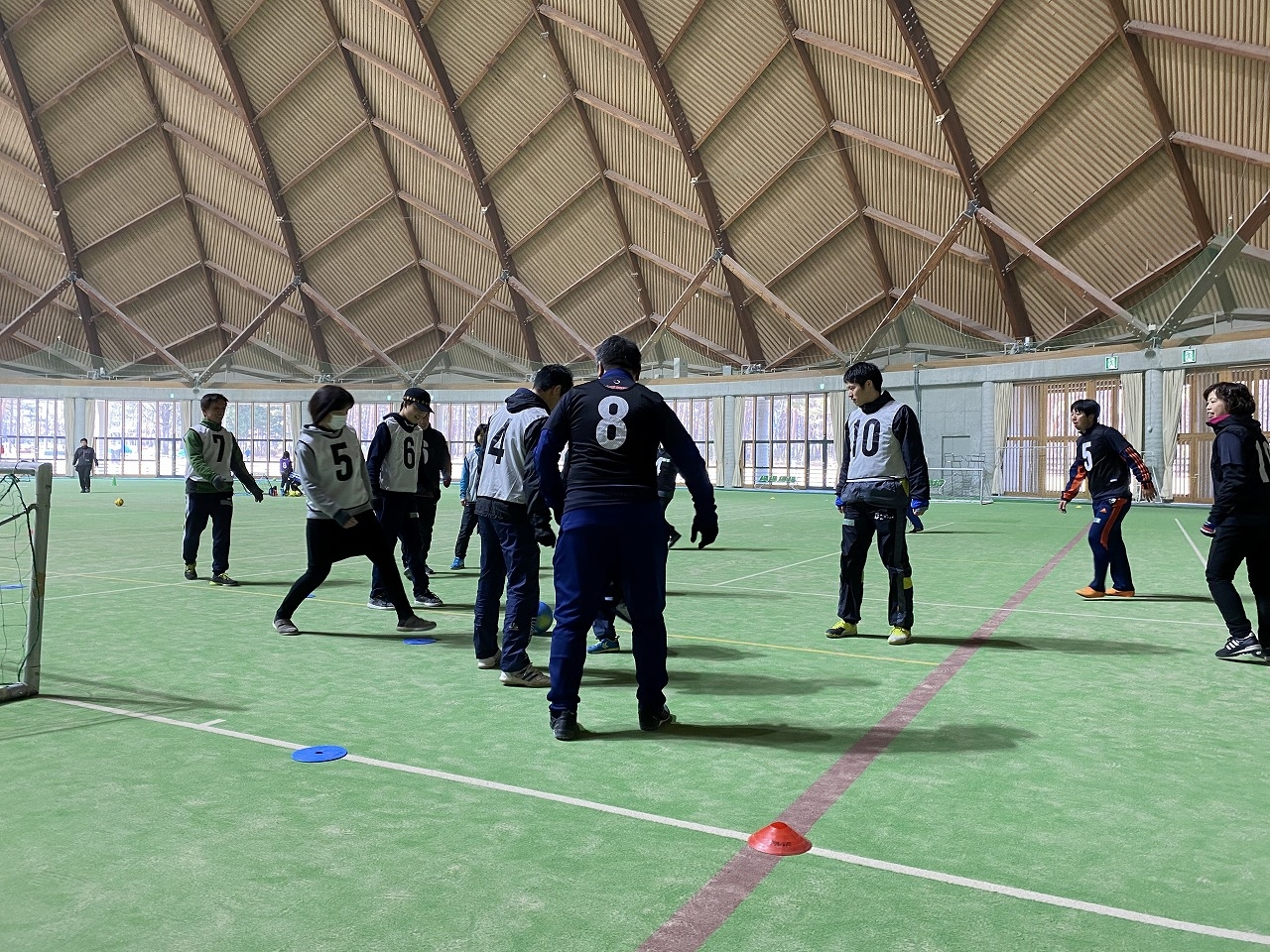 | 担当者のコメント | まぜこぜウォーキングサッカーとして、キッズだけではなく多年代の方に参加をいただき、ウォーキングサッカーを楽しみました。障がいのある方や初めてサッカーをする女性も笑顔で一緒にサッカーをする事ができました。 |